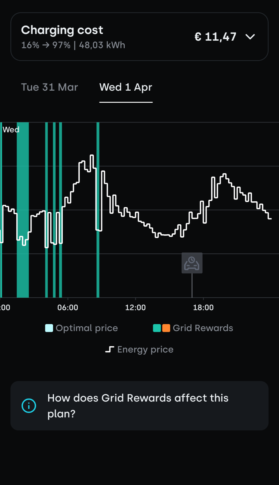 Als jouw laadpaal door een grid-interventie op een duurder uur oplaadt dan gepland, betaal je nog steeds de oorspronkelijk goedkope spotprijs. Je wordt niet gestraft voor netdienstverlening.
